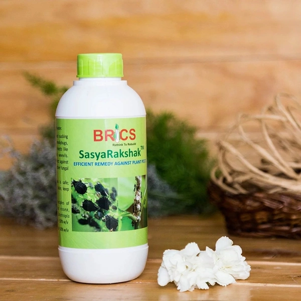 SasyaRakshak is a water-soluble plant protectant, carefully designed to contain all good constituents derived from select botanicals of known pesticidal properties. The combination of active ingredients from these plant sources provides excellent protection to the crop plants against sucking (Aphids, thrips, mites, mealybugs, hoppers, and bugs) as well as biting ( leafminers, caterpillars, beetles, weevils) insects.