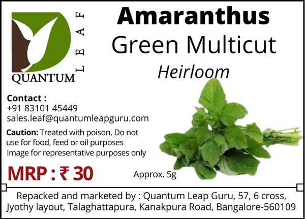 Heirloom seeds ( = open pollinated, desi, naati) of Amaranthus multicut greens.
