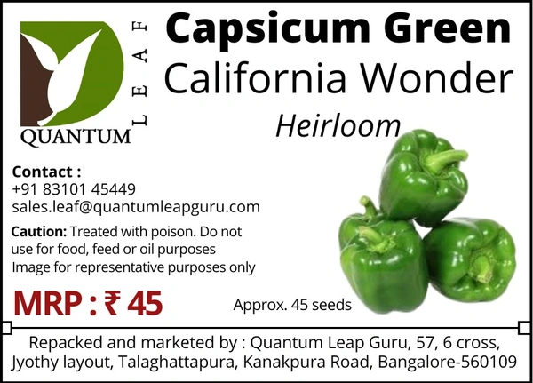Heirloom seeds ( = open pollinated, desi, naati) of capsicum green.