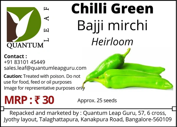 Heirloom seeds ( = open pollinated, desi, naati) of chilli green - bajji mirchi.