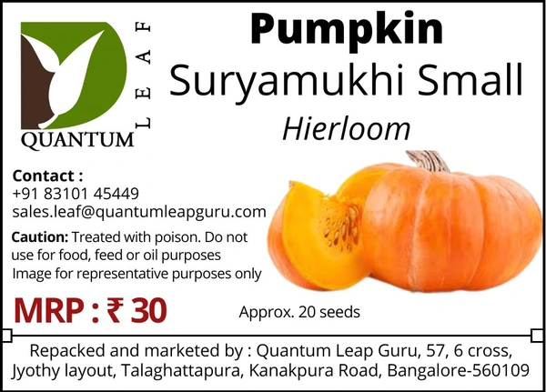 Heirloom seeds ( = open pollinated, desi, naati) of pumpkin suryamukhi small.