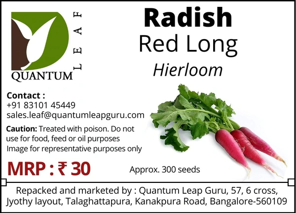 Heirloom seeds ( = open pollinated, desi, naati) of radish red long.